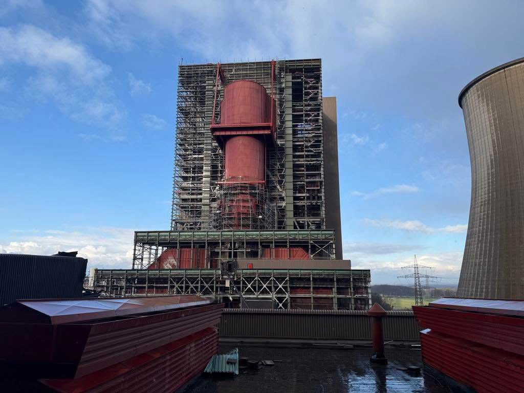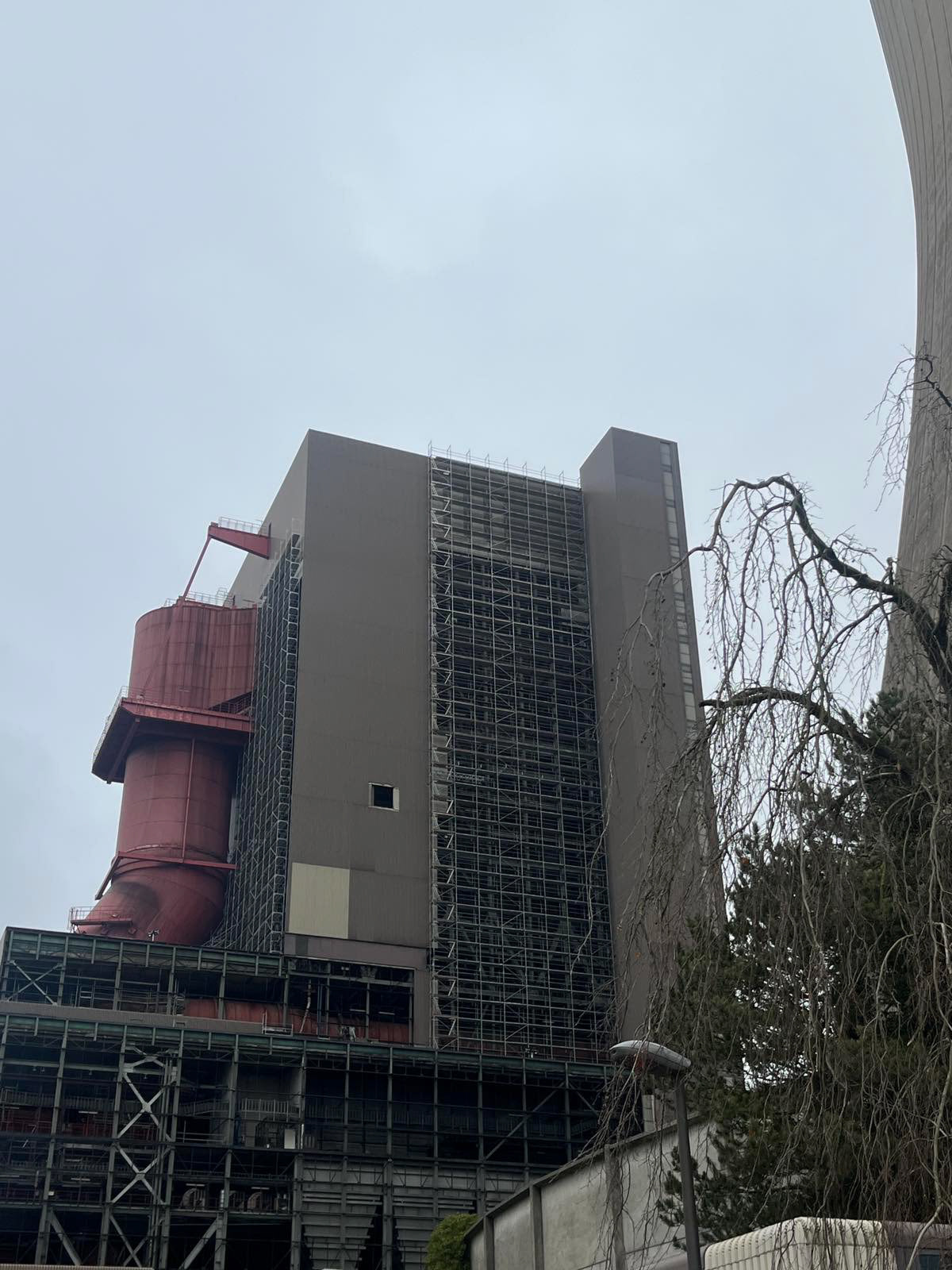 Projekt: Industrie-Fassadengerüst – Rückbau eines Kraftwerks, Deutschland Im Rahmen dieses groß angelegten Projekts übernahmen wir die komplette Montage eines Fassadengerüsts an einem industriellen Bauwerk – einem stillgelegten Kraftwerk. Unser Ziel war es, eine sichere und stabile Arbeits- und Zugangsplattform für andere Gewerke bereitzustellen, die mit dem Rückbau von hochgelegener Anlagentechnik beauftragt waren.