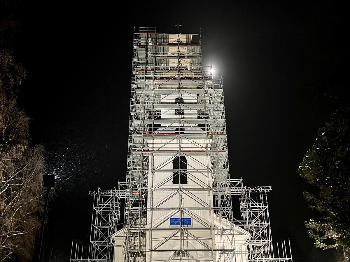 Gerüstmontage rund um eine Kirche