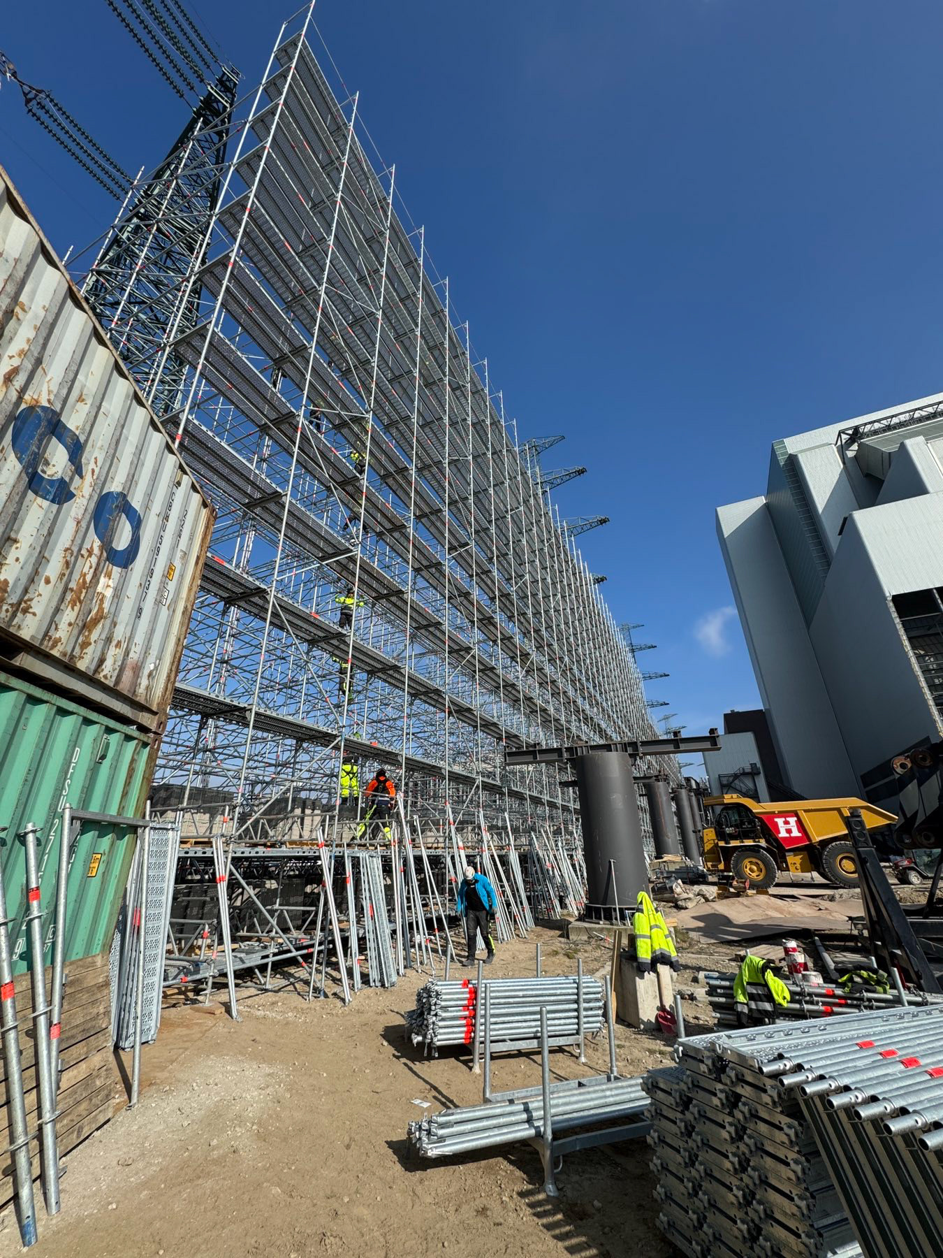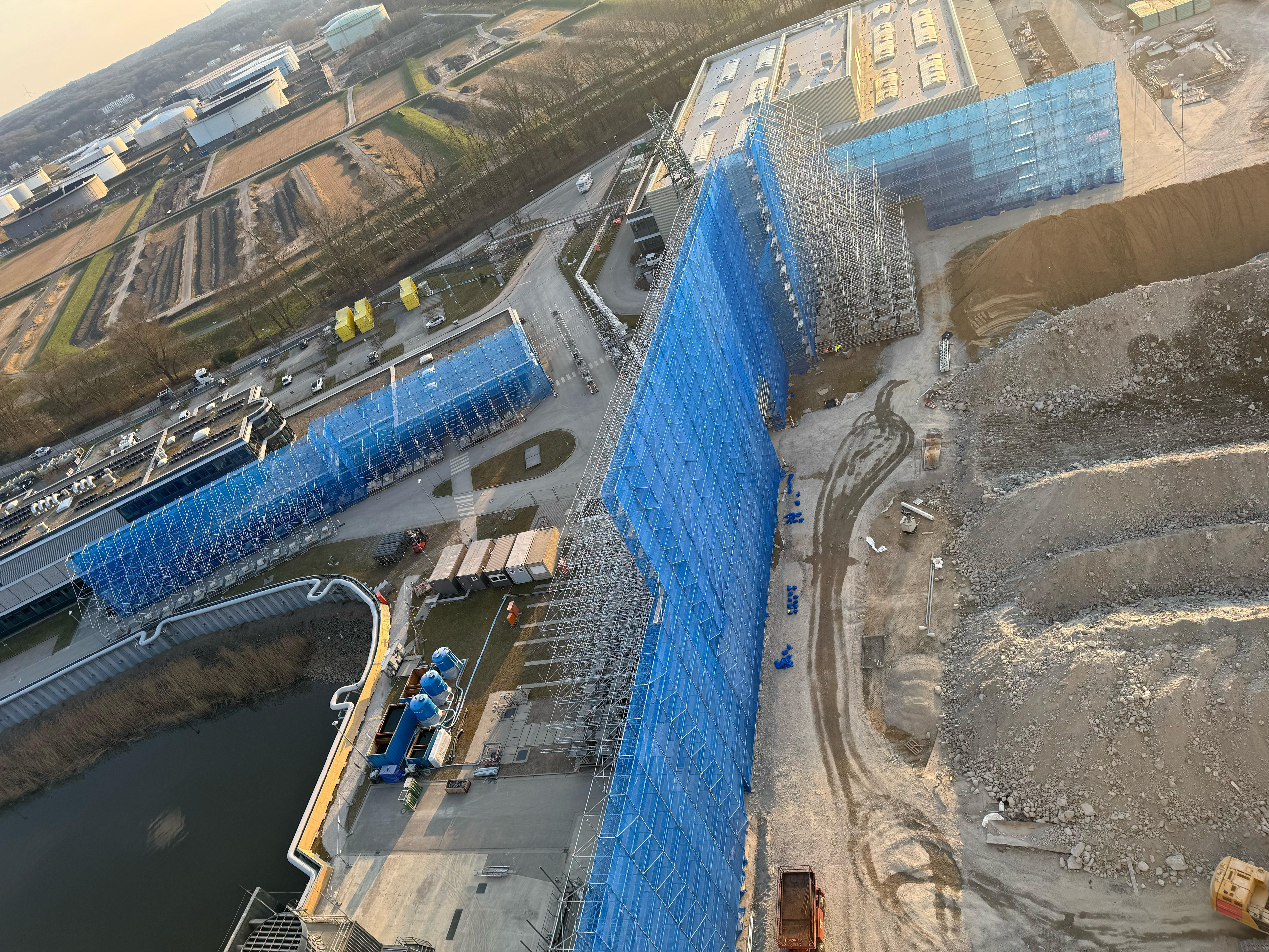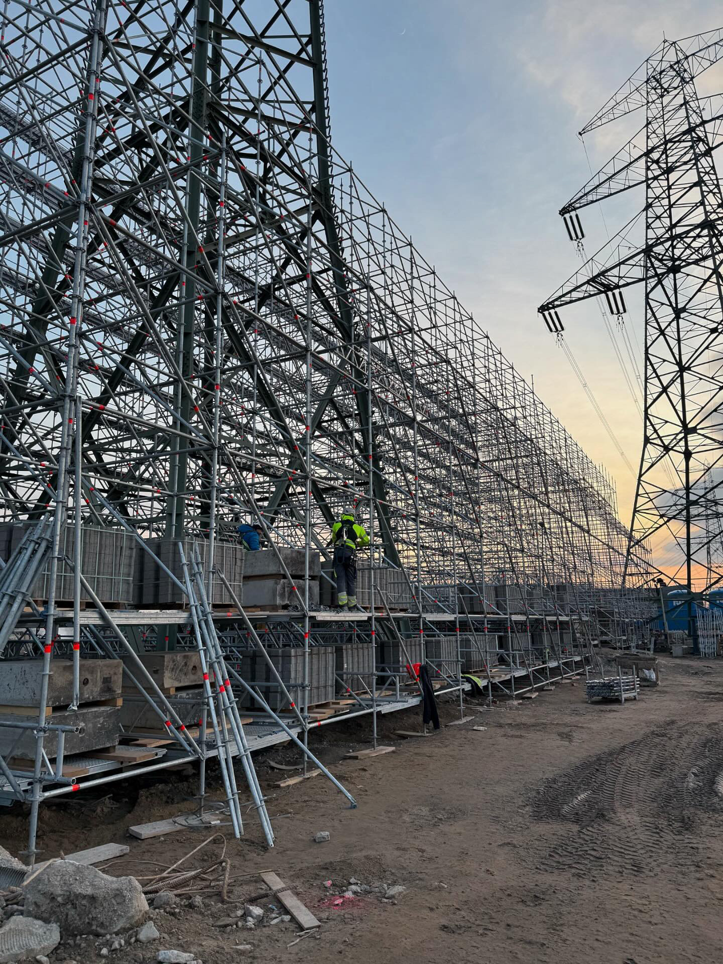 Im Rahmen des komplexen Rückbaus eines Kraftwerks in Deutschland errichteten wir ein spezielles Schutzgerüst, das dazu diente, herabfallende Trümmerteile bei einer kontrollierten Sprengung aufzufangen. Das Hauptziel bestand darin, maximale Sicherheit für Arbeiter und Ausrüstung zu gewährleisten und die Ausbreitung gefährlicher Bruchstücke zu verhindern. Das Gerüst wurde individuell geplant und konstruiert, um baulichen und sicherheitstechnischen Anforderungen gerecht zu werden – mit verstärkten Elementen und einem speziellen Netzsystem zur Rückhaltung des Abbruchmaterials.
