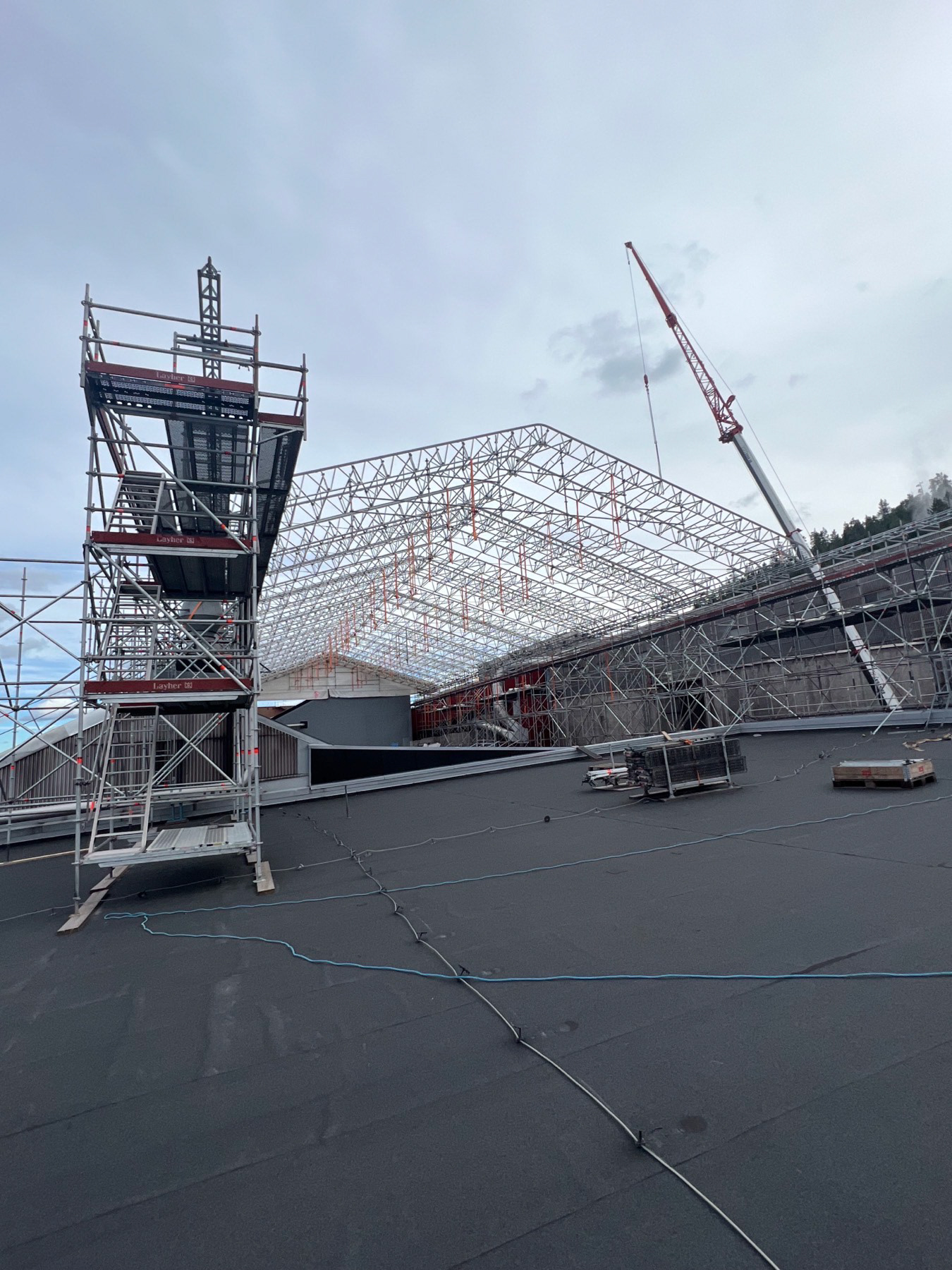 Wir errichten spezielle Gerüstdachsysteme, die Baustellen zuverlässig vor Witterungseinflüssen schützen. So ist eine durchgehende Arbeit an Neubauten, Industriehallen, Fabriken oder Lagerhäusern möglich – unabhängig von Regen, Schnee oder Wind. Unsere Konstruktionen bieten eine zuverlässige, sichere und flexible Überdachung für jedes Projekt.